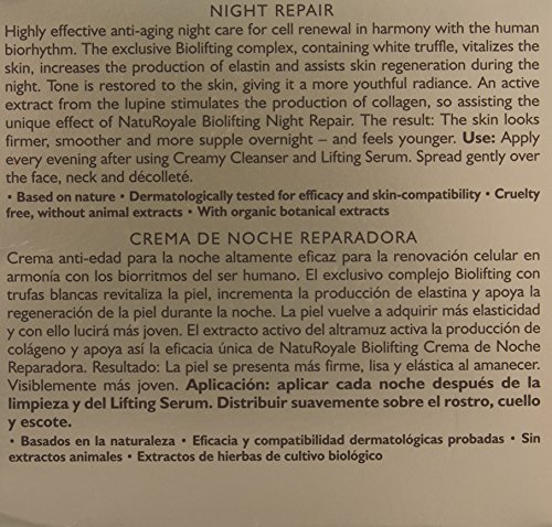 ReleaseDate : 2016-05-11 Studio : Everready First Aid Publisher : Everready First Aid Binding : Health and Beauty Product Description Highly Effective Anti-Aging Night Care For Cell Renewal In Harmony With The Human Biorhythm. The Exclusive Bio lifting Complex, Containing White Truffle, Vitalizes The Skin, Increases The Production Of Elastin And Assists Skin Regeneration During The Night. Tone Is Restored To The Skin, Giving It A More Youthful Radiance. An Active Extract From The Lupine Stimulates The Production Of Collagen, So Skin Looks Firmer, Smoother And More Supple Overnight - And Feels Younger. 0