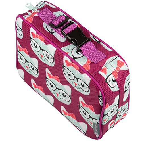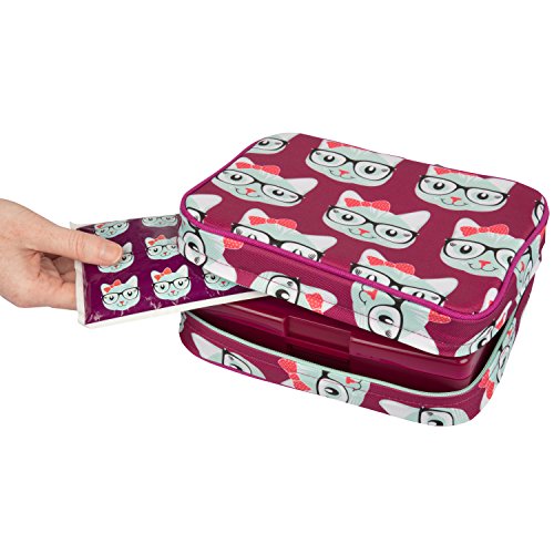Insulated Lunch Box Sleeve - Securely Covers Your Bento Box - Kitty Design - Eliminate the hassle of carrying a separate lunch tote with this Bentology Insulated Lunch Box Sleeve. Compact and stylish, it's perfect for ensuring that all your on-the-go meals remain fresh and tasty. This Sleeve fits perfectly around the Bentology Bento Lunch Box along with an ice pack. The sides zip up, so you can easily and safely slide your meal into your backpack, briefcase or bag, allowing you to enjoy a cool, fresh meal without the added baggage. The exterior fabric of this insulated Lunch Sleeve is made of 100% post-consumer recycled PET and, along with all Laptop Lunches Bento-wareTM products, is made of high-quality non-toxic materials free of phthalates, BPA (bisphenol-A), lead, and PVC.Feature