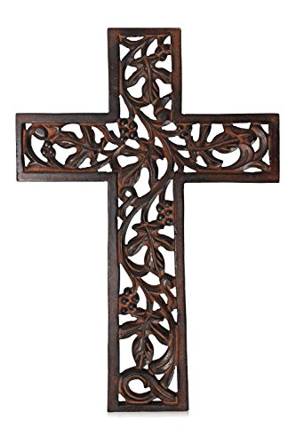 Wooden Cross with Handmade Floral Carving French Plaque for Living Room Home Decor Accessories