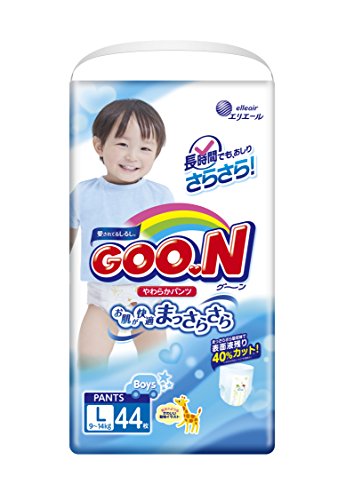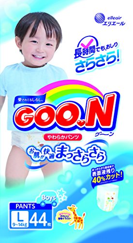 -. Binding : Health and Beauty -. Brand : GOON -. EAN : 4902011751383 -. Feature : Japanese Baby Pants Large Size for Boys -. IsAdultProduct : 0 -. Label : DAIO PAPER -. Manufacturer : DAIO PAPER -. MPN : 753462 -. PackageQuantity : 1 -. PartNumber : 753462 -. ProductGroup : Health and Beauty -. ProductTypeName : HEALTH_PERSONAL_CARE -. Publisher : DAIO PAPER -. Studio : DAIO PAPER -. Title : Elleair | Diapers | GOO.N Soft Fit Pants L-size for Boy 44 sheets [ Japanese Import ]
