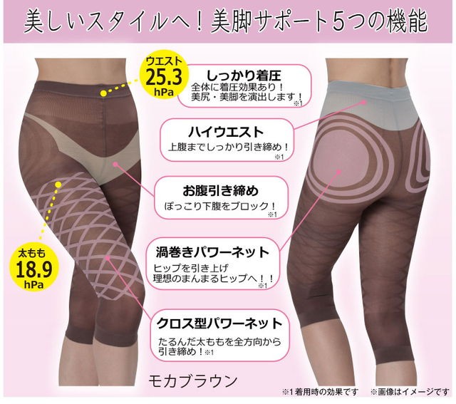 | ご使用方法 | 1.スパッツをたぐり寄せて両足を通し、ひざ周りにパワーネットがくるよう位置を調節してください。 2.スパッツがねじれないように注意しながら、太ももにかけて左右交互均等にゆっくり引き上げてください。 3.お腹まで引き上げてください。股とスパッツの間に空間ができないようにぴったりと着用してください。 【無理に強い力を加えると破れやすいためお気をつけください】 商品の破れやひっかき傷を防ぐために、アクセサリー等は外し手足の爪を滑らかにして着用してください。着用の際、一気に強く引き上げると破れ(伝線)や糸切れの原因になりますのでご注意ください。 |