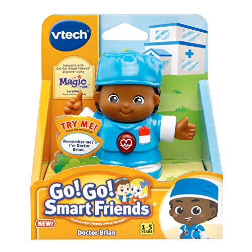 -. Feature : Press Doctor Brian's light-up button, and he will come to life by introducing himself, talking about his job as a doctor and playing sing-along songs / Doctor Brian also responds to Magic Point locations on Go! Go! Smart Friends playsets (each sold separately) with different phrases, motion, lights and more / Perfectly sized for little hands, Doctor Brian is easy for children to pick up to help him make people feel better / Each Go! Go! Smart Friends character is unique; collect them all to experience their friendly personalities (each sold separately) / Requires 2 AAA batteries (batteries included for demo purposes only; new batteries recommended for regular use); intended for ages 1 to 5 years