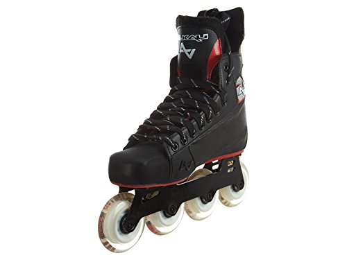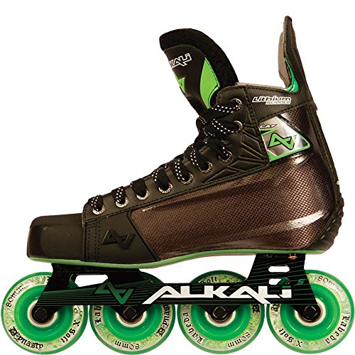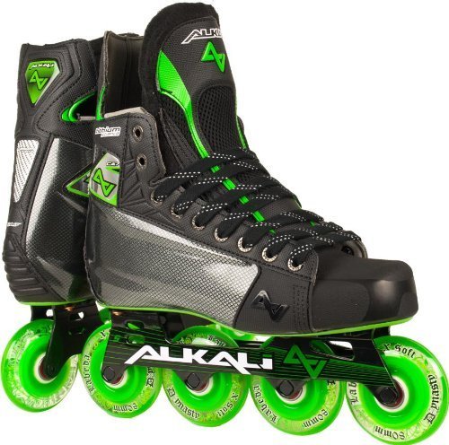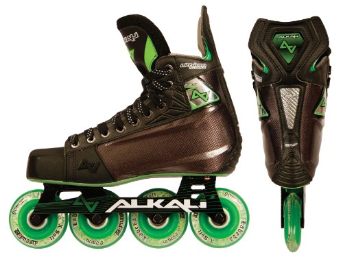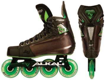 ReleaseDate : 2012-05-15 Studio : Alkali Hockey Publisher : Alkali Hockey Binding : Sports Product Description The Alkali CA7 roller hockey skate is an advanced level skate from Alkali Hockey. The CA7 is a step up from the CA5 in that it includes Surlyn quarter panels for increased rigidity and response and also a brushed Microfiber liner for better comfort and increased moisture wicking abilities. The CA7 also features an aircraft grade Aluminum chassis with Labeda Dynasty wheels and more advanced Swiss Lite bearings. 0