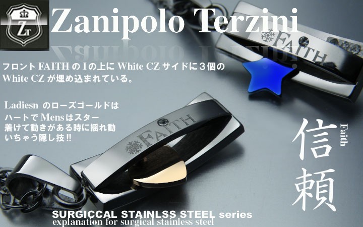 ■素材:サージカルステンレススチール,IP Color Plating ■カラー:ブルー(MEN)/ローズゴールド(LADY) ■20mm×7.5mm×5.5mm(TOP) チェーンの長さ:45+5cm(MEN) / 40+5cm(LADY) ■付属品:Zanipolo Terziniオリジナルポーチ |