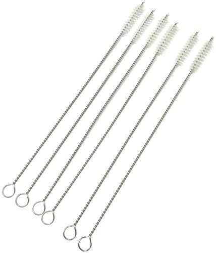 STRAW CLEANER BRUSHES, NYLON BRISTLES W/ STAINLESS STEEL HANDLE - 6 PIECE VALUE PACK - 1/4"(7MM) ROUND HEAD X 7"(175MM) LONG - KOEM