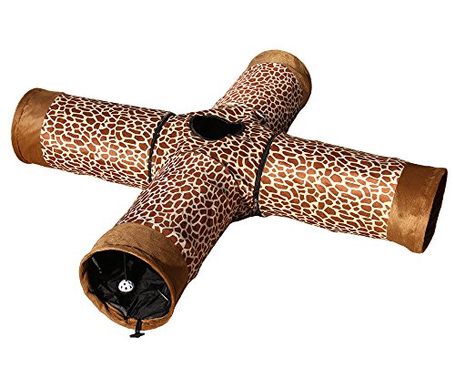 -. Title : Cat Tunnel 3 W Leopard Crinkle Kitten Play Toy, Collapsible for Small Medium and Large Cats