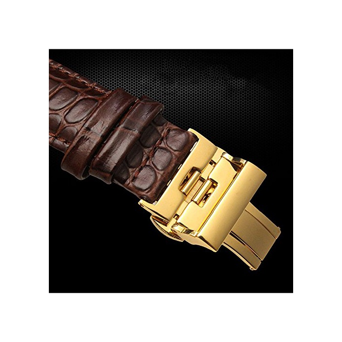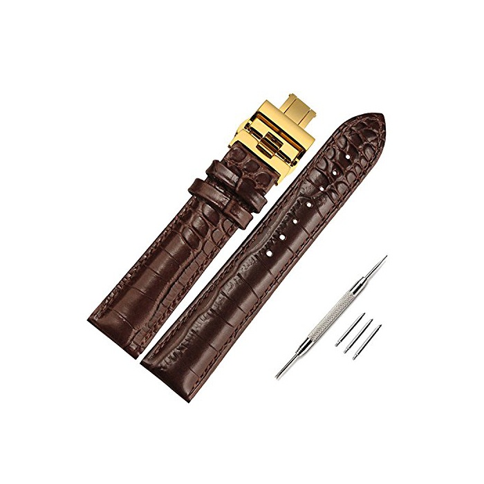 원본상품명: SONGDU 時計ベルト [バネ棒+工具付き] カフレザ 男女兼用 プッシュDバックル ダクブラウン(18mm、ゴルデン バックル)