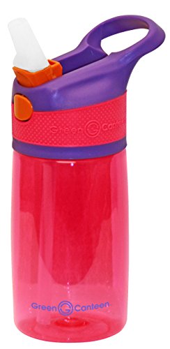 Green Canteen PTBK-400-PPP Single Wall Tritan plastic Pink Bottle with Purple/Pink Push Button Flip Cap with Orange Accents, 12 oz