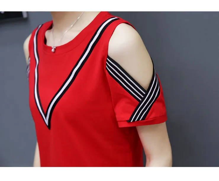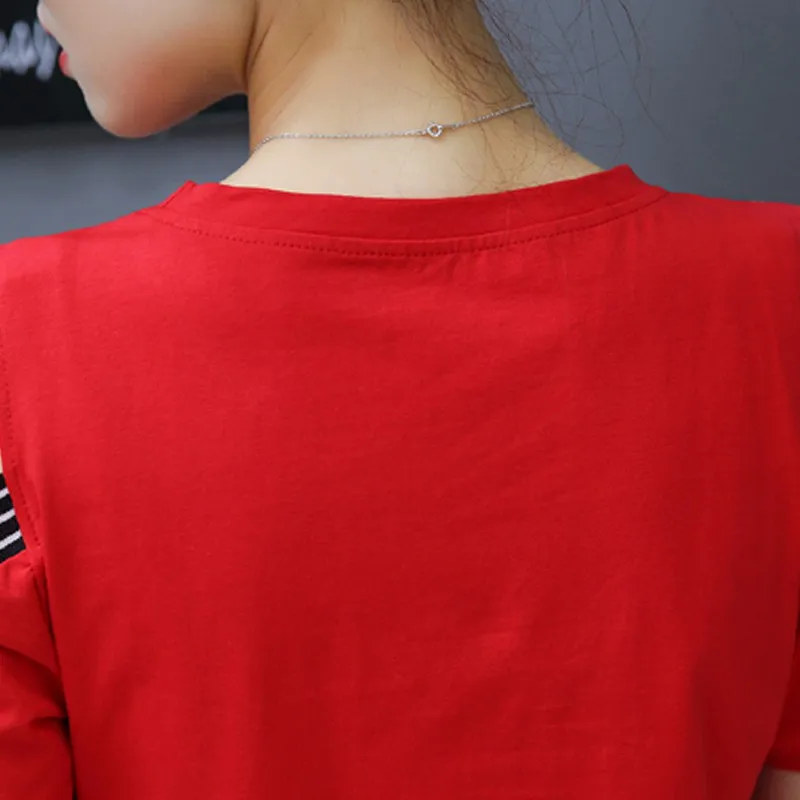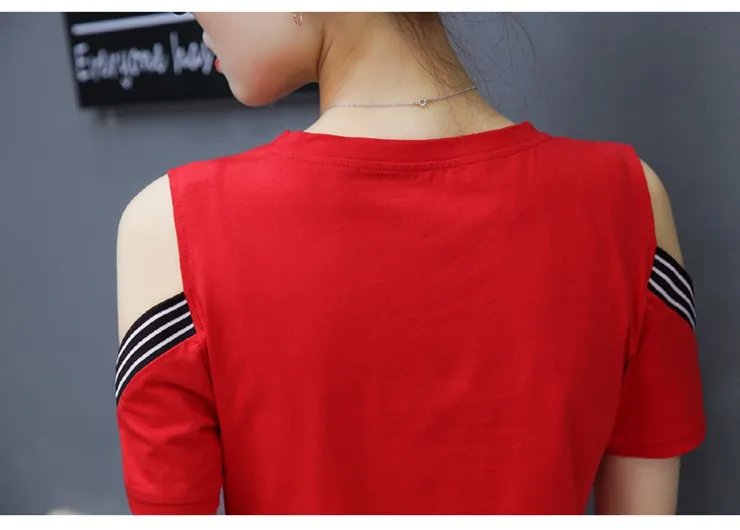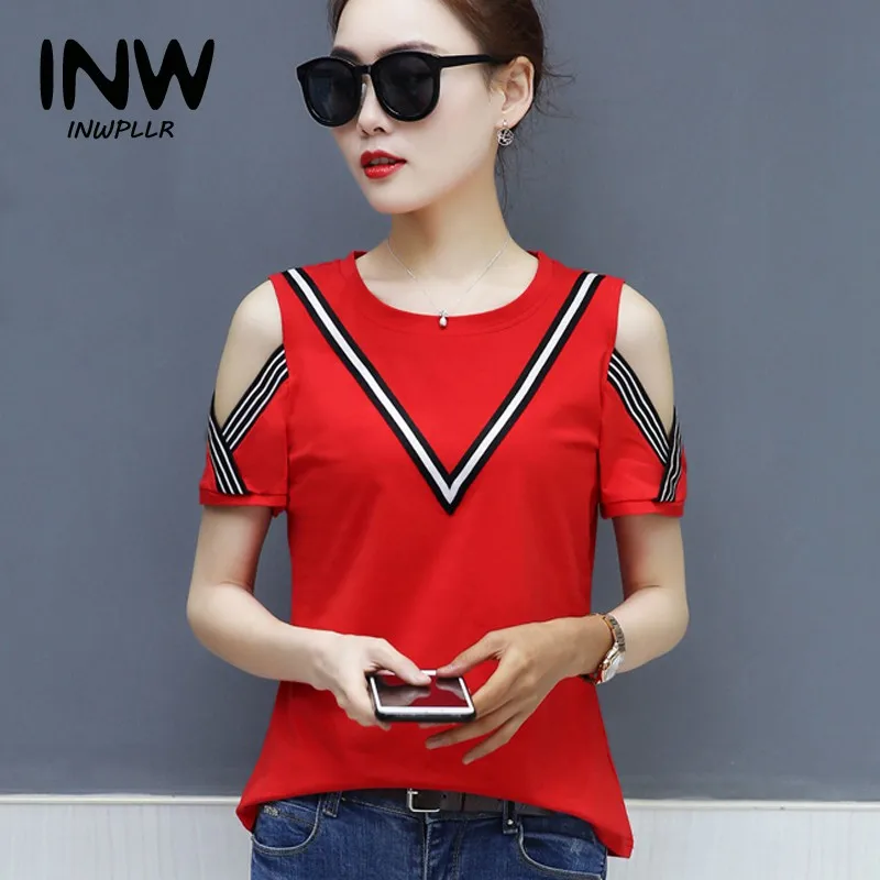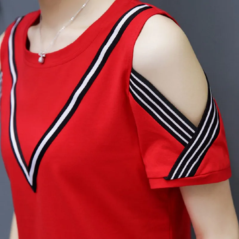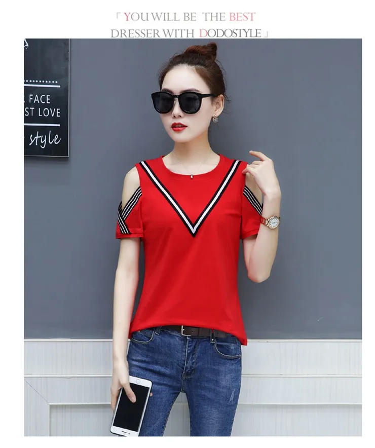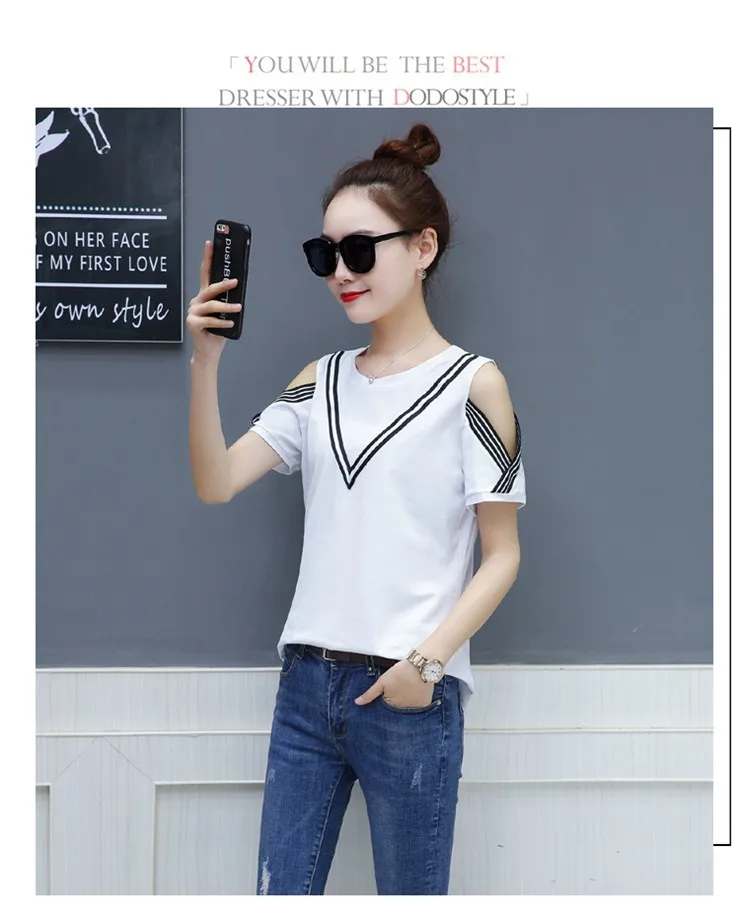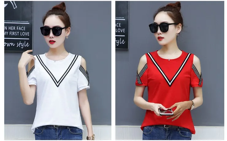 Cotton T-shirt :Short Sleeve Open Shoulder Tshirts Femininas Poleras Mujer