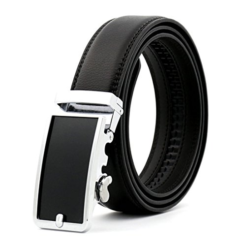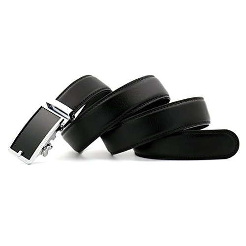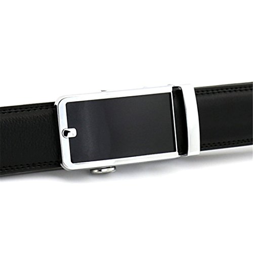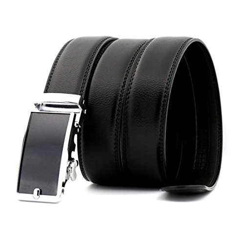 Belt Features: (a)The belt is sleek and clean, and provides a perfect fit for everyone. (b)plz buy one size larger than your waist,oversize for special demand (c)The tip of the belt inserts into the ratchet belt buckle, where a locking mechanism holds the belt in place from the back. (d)To remove the belt, just press the small metal lever on the bottom of the buckle, and the belt slides out of the buckle.