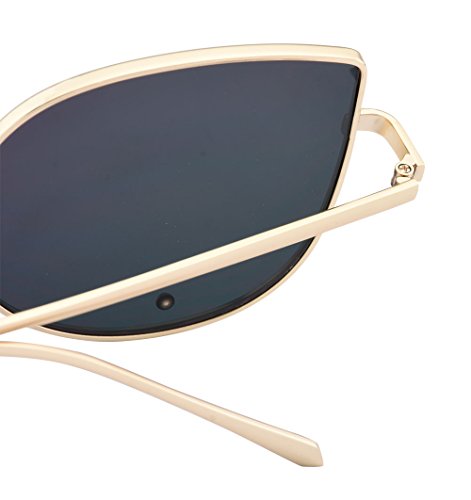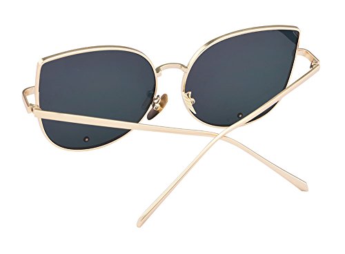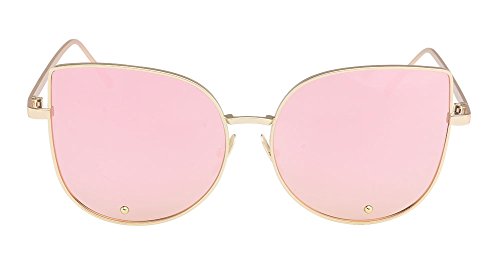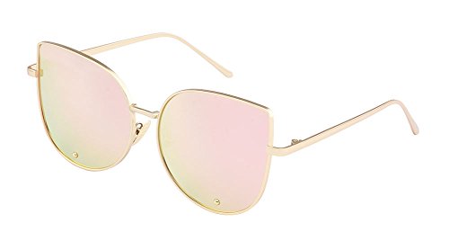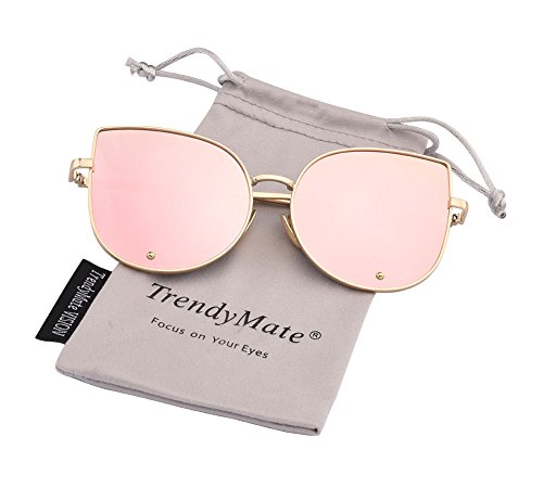 TrendyMate-Cat Eye Mirrored Flat Lenses Metal Frame Rivet Cute Mirrored Women Sunglasses