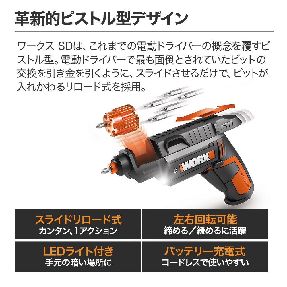 Works SD is a pistol type that overturns the concept of electric drivers so far.