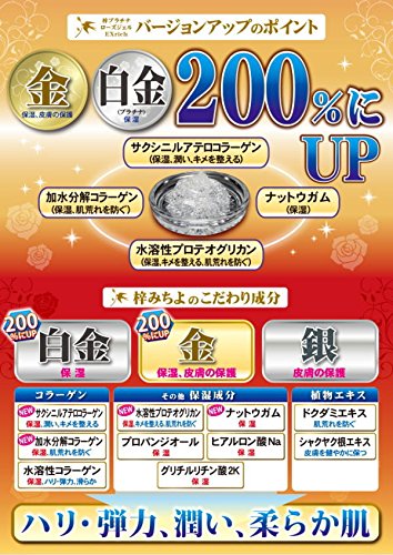 【Contents】 200g × 2 + 50g × 2 【All ingredients】 Water, glycerin, propanediol, BG, platinum, gold, silver, sodium hyaluronate, water soluble collagen, succinyl allergenic collagen, hydrolyzed collagen, water soluble proteoglycan,