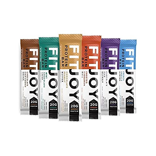 -. Feature : FitJoy packs 20g of protein in a gluten-free and non-GMO bar, with no artificial colors, flavors, or sweeteners. / 100% Satisfaction Guarantee: All FitJoy sales by Amazon and Nutrabolt are backed by a 30-day, full money-back guarantee. / 20 grams of protein, 23 grams of carbohydrates, 10 grams of fiber, 220 calories. / Made for delicious on-the-go snacking that caters to your dietary preferences and restrictions. / With real ingredients, FitJoy just tastes better than your ordinary protein bars.