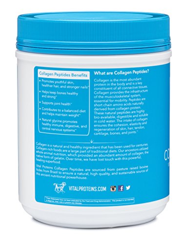 -. Feature : 100% Pure Collagen Peptides, Pasture-Raised, Grass-Fed, Non-GMO, Kosher; Soluble in cold liquids / Promotes youthful skin, healthier hair, and stronger nails / Helps keeps bones healthy and strong, supports joint health / Contributes to a balanced diet and helps maintain weight / Natural glycine promotes healthy immune, digestive, and central nervous systems.