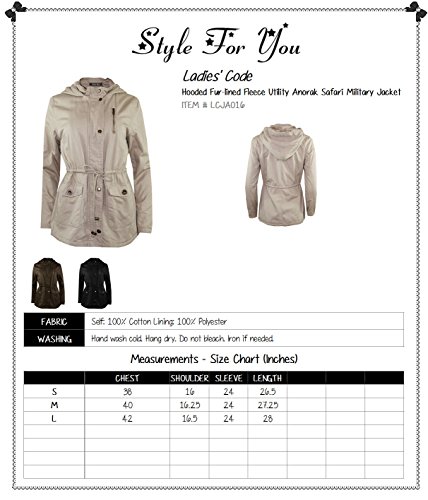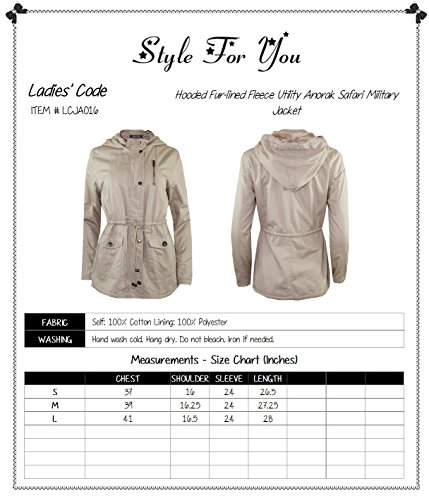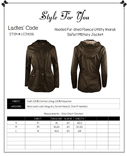 ★ Ladies' Code is the place you go for stylish, trendy, unique, wide range of one-of-a-kind items for affordable price. Our mission is to show you that you can look gorgeous and experiment with styles and fashion at any age. It's all about having fun with style and fashion! Our items can help to make you look better, but also feel more confident and happy. Stay on top of the hottest styles and shop Style For You to be your own style and show your personality! ★ LCJA015: Fur-lined Fleece Utility Anorak Safari Military Jacket | This utility anorak safari military jacket features fur lining, zipper and snap button closure, two pockets, one chest pocket, and adjustable shape-defining drawstrings at waist. ★ LCJA016: Hooded Fur-lined Fleece Utility Anorak Safari Military Jacket | This utility anorak safari military jacket features fur lining, hood, zipper and snap button closure, two pockets, zipper detail on chest for unique look, and adjustable shape-defining drawstrings at waist.
