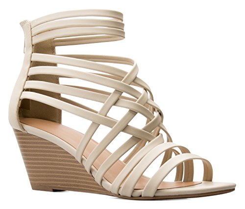 OLIVIA K Women's Strappy Woven Wedge Sandals - Sexy Open Toe Heel - Comfort, Fasionable, Casual...