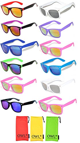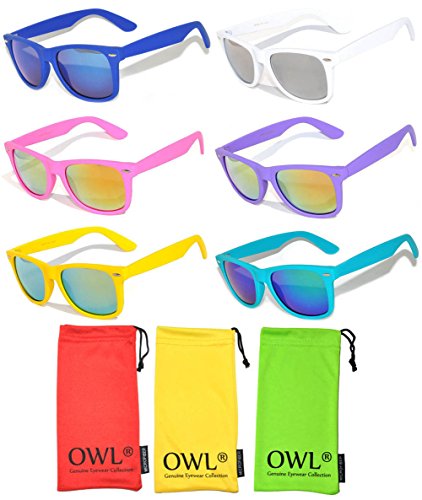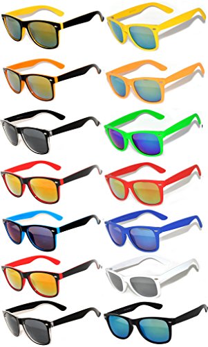 | Retro Vintage Wayfarer Sunglasses Colorful Mirror Lens Matte Frame 3,5,6,10 Pairs. |