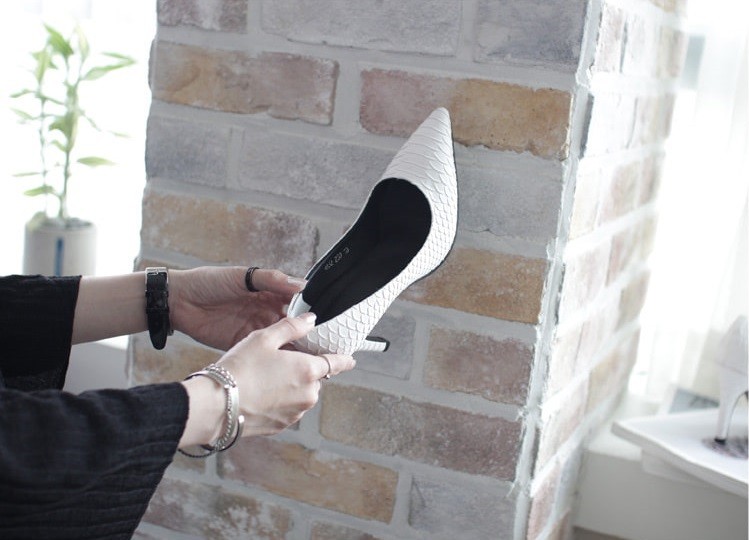 パイソン調の柄がカッコよく、スタイルをクールにまとめてくれる1足。
