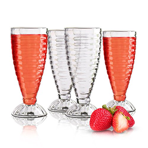 Tall Sundae Glasses, Set of 4, Dishwasher Safe, Footed - Decorative Elegant Cups for Dessert, Smoothies, Martini, Ice Cream (13.19 Oz.) - Design 2