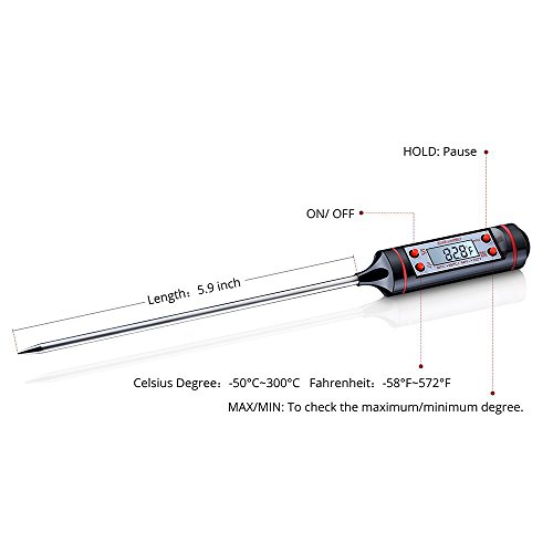 Fantastic Premium Deals Brings You Our New Instant Read Digitial Cooking Thermometer. Now you can cook like never before weather it's that perfectly cooked mouth watering steak or protecting your loved one's! Features: 1.LCD Instant Read Display 2. Premium slim-fitting case which comes with an easy-grip handle. 3. Easy to use, and portanle to take on grilling adventures! 4.C/F Reading Display options? 5.Best used in Kitchen, cooking water temperature thermometer etc.. 6.125mm stainless probe, it is convenient for testing with precision perfect accurate readings. 7.Max and Min Memory function Best.For cooking, BBQ, food preperation, food processing, refrigeration, labratory facilities, catering, restraunts, perfect home cooked meals, etc. Technical Specifications: Measuring range -50°C~ 300°C (-58°F~ 572°F) Resolution 0.1°C Accuracy 1°C?(-20°C--? 80°C)±?5°C(other?ranges) Length?of?prop?pole 125(mm) Power supply - DC1.5V?AG13 Size 2.6*1.5*23.8(14.5cm 9.3cm) cm Usage cooking, BBQ, food preperation, food processing etc 0 |
