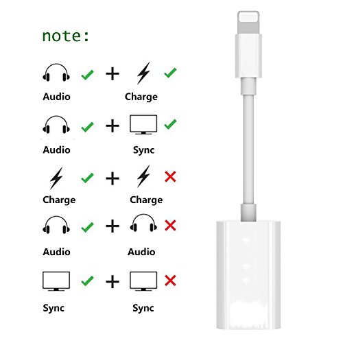 iphone 7 Dual Lightning Adapter Compatible for iOS 10.3 ,Lightning Headphone Audio + Charge for iphone7/7plus