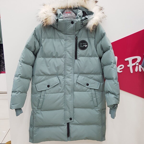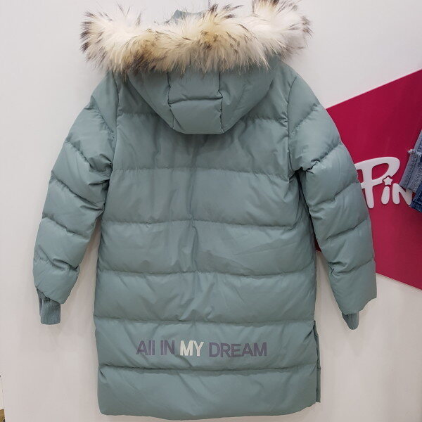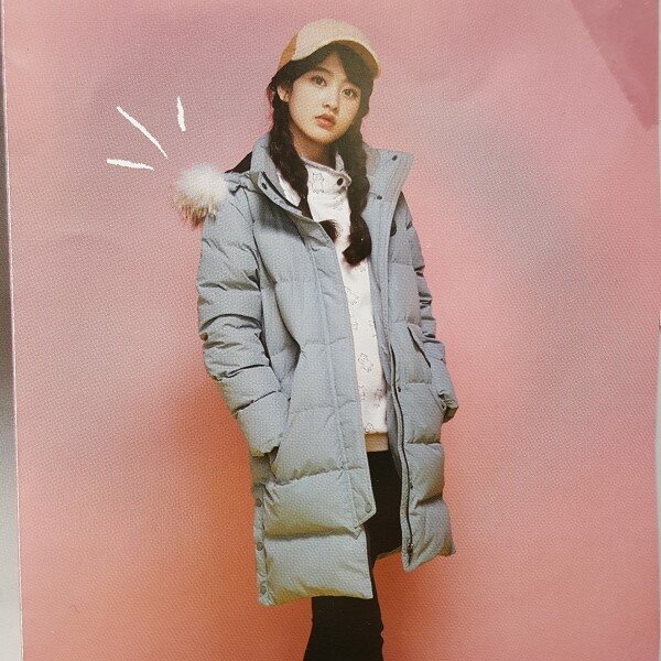 나염포인트롱벤치다운점퍼 무릎길이로 가볍고 슬림한 스타일.