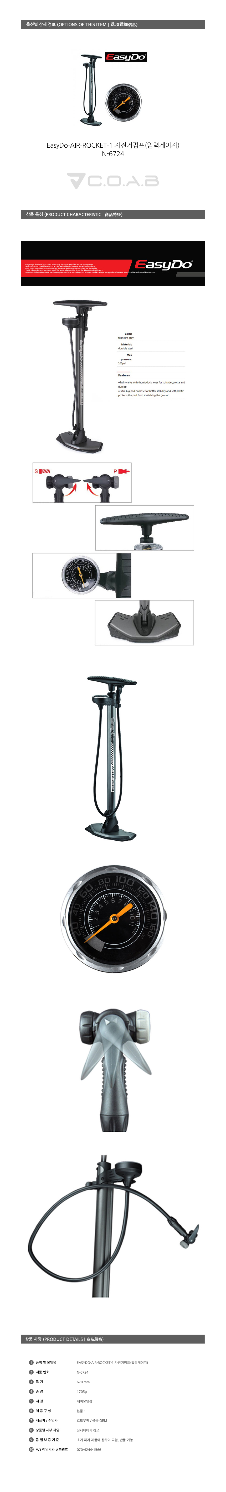 ED AIR-ROCKET-1 bicycle pump (pressure gauge)