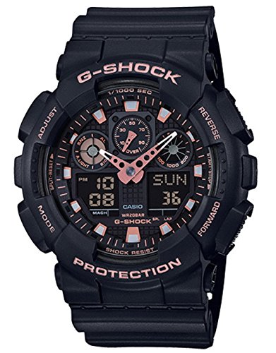 A new color addition, in two shades of gold, comes to the GA100 model lineup. The popular big case GA100 starts out with basic G-SHOCK black, which is then accented with brilliant rose gold and gold accents. The new gold-accented designs are really attractive additions to the G-SHOCK lineup. This model comes equipped with stopwatch, countdown timer, multi-alarm and 200m water resistance.