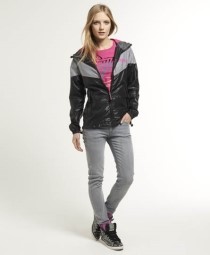 Superdry women's Chambray Stormbreaker hooded jacket, featuring a raised front and back logo, zip fastening,