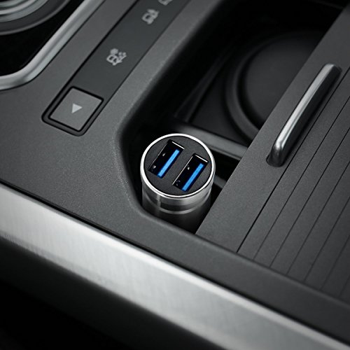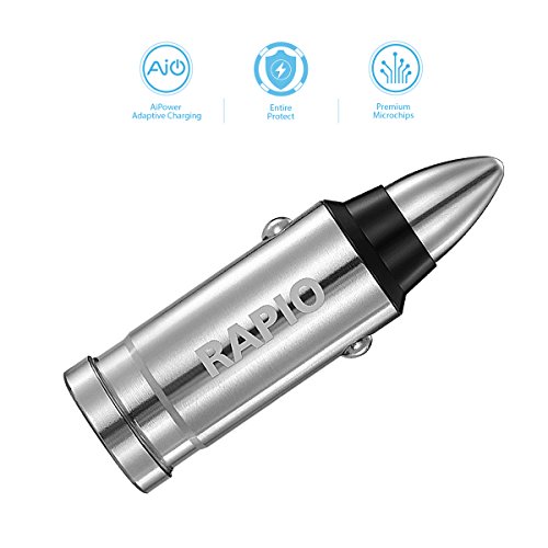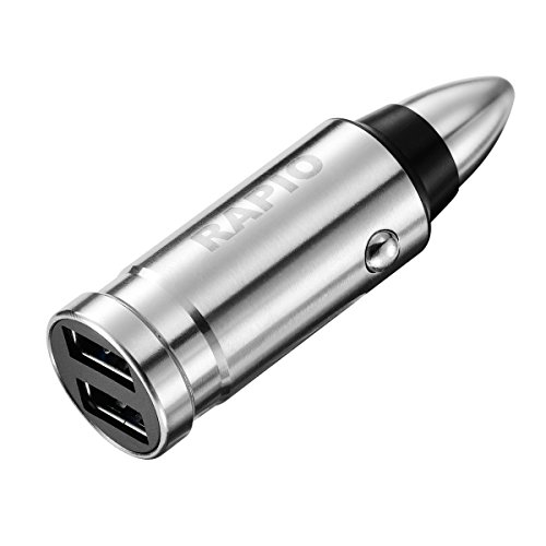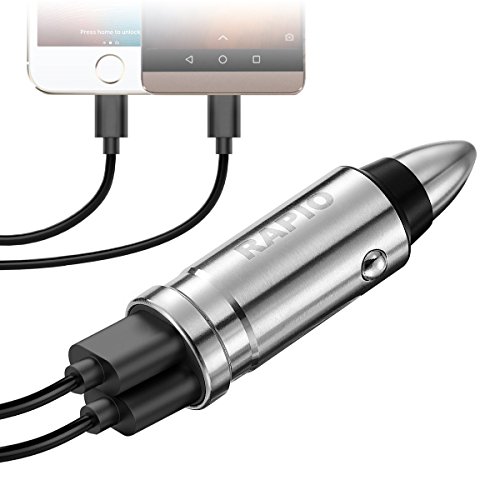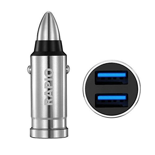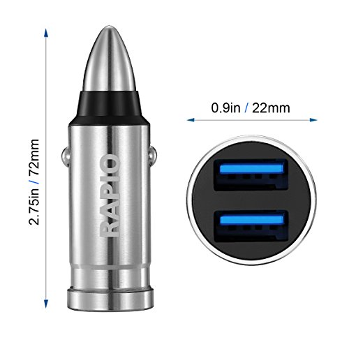 One Year Warranty Rapio Stainless Steel Dual USB 3.0 Bullet Car Quick Charger for IPhone 7/ IPhone 6/ Samsung Galaxy S8/ S7/ LG v20 and More (Bullet Dual Charger)