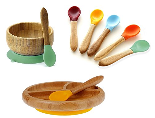 -. Title : Avanchy Mix & Match Organic Bamboo Baby Gift Set. Bamboo Baby Bowl + Bamboo Baby Divided Plate + 5 or 2 Spoons set. Great for Baby Boy, Baby Girl, Unisex