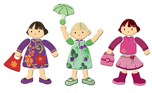 Djeco Stylish Eve magnets have wooden tops and shaped magnetic backs. The graphics are applied with a thermal process so they are bonded to the wood with heat. Djeco products use fine artist and illustrators from all over the world to make their products graphically unique.