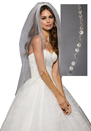 Passat 3 Colors Single-Tier 36" Fingertip Length Wedding Bridal Veil Edged with Crystals and Rh...