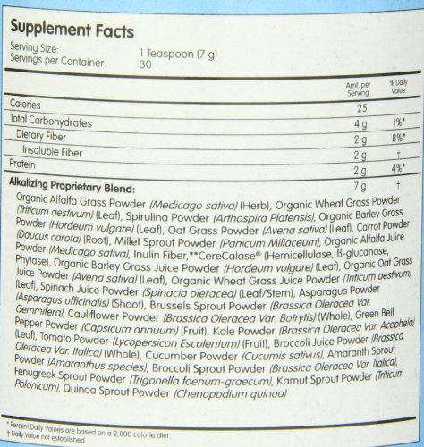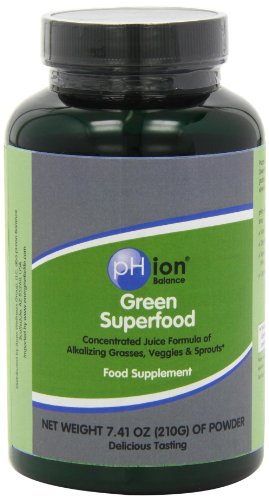 -. Feature : Super alkalizing. pHion Green Superfood contains the most complete blend of over 30 different alkaline forming foods - including alkalizing organic grasses, veggies and sprouts aimed at neutralizing damaging acids found in your system / Raw. Our gentle, low heat process insures that all of the nutrients in pHion Green Superfood stay intact / Super concentrated. Just one teaspoon of pHion Green Superfood provides the nutrient equivalent of more than one pound of vegetables! / Super bioavailable. Because our formula contains cerecalase, a patented blend of enzymes, the ingredients are up to 48% more bioavailable than the greens in other products / Contains the most complete blend of over 30 different alkaline forming foods / Process insures that all of the nutrients in pHion green super food stay intact / Provides the nutrient equivalent of more than one pound of vegetables / Gentle, low heat process insures that all of the nutrients in pHion Green Superfood stay intact / Formula contains cerecalase, ingredients are up to 48% more bioavailable than the greens in other products