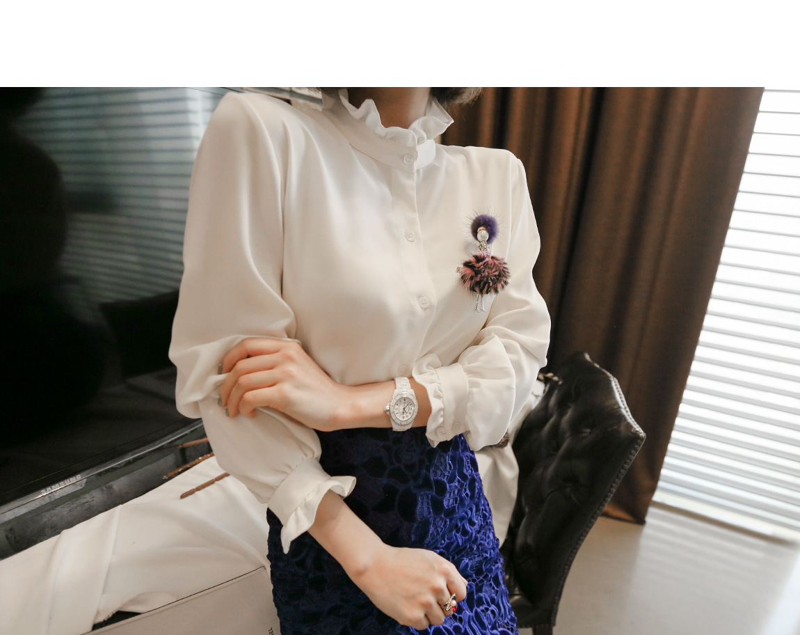 ハイネックのデザインと小売やフリル、きめ細かさで