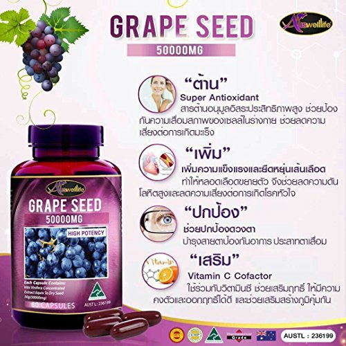 Auswelllife Grape Seed 50000mg Super Anti-Oxidant 60 Capsules