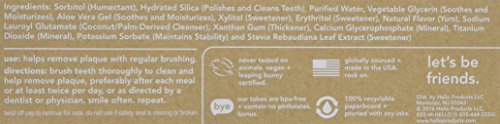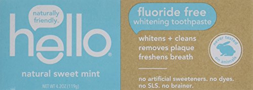 ReleaseDate : 2017-04-12 Studio : Hello Products LLC Publisher : Hello Products LLC Binding : Health and Beauty Product Description Say hello to naturally friendly fluoride free whitening toothpaste in natural sweet mint. It's thoughtfully formulated with high quality ingredients like xylitol and erythritol, soothing aloe, stevia and a silica blend that cleans and whitens, removes plaque and freshens breath. but buckle-up, there's more goodness: hello contains no artificial sweeteners, no artificial flavors, no dyes, no microbeads, no parabens, no sls and no gluten. As if that weren't enough magic for one tube, hello is also vegan, never tested on animals (Leaping Bunny Certified and PETA recognized) and made in the USA. We're serious about being friendly and about what goes into our paste. 0