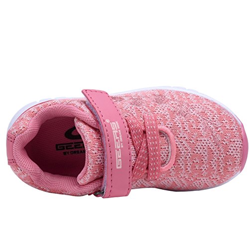 ONSUN OS002 Kids Running Sneakers little Girl's Fashion Sport Shoes PINK VELCRO-12