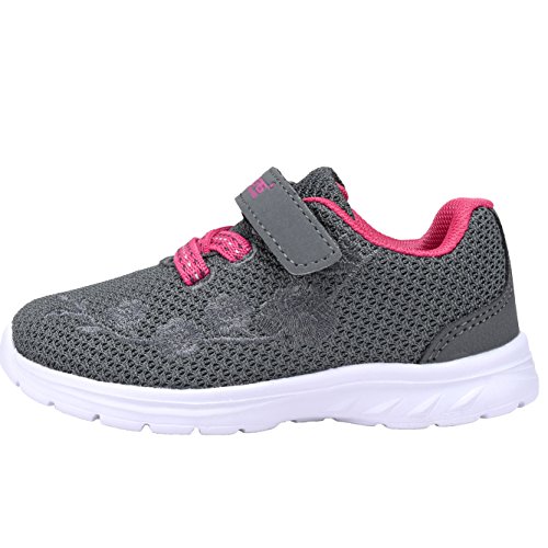 ONSUN OS002 Toddler Running Sneakers little Girl's Colorful Mesh Shoes GREY/FUCHSIA-10