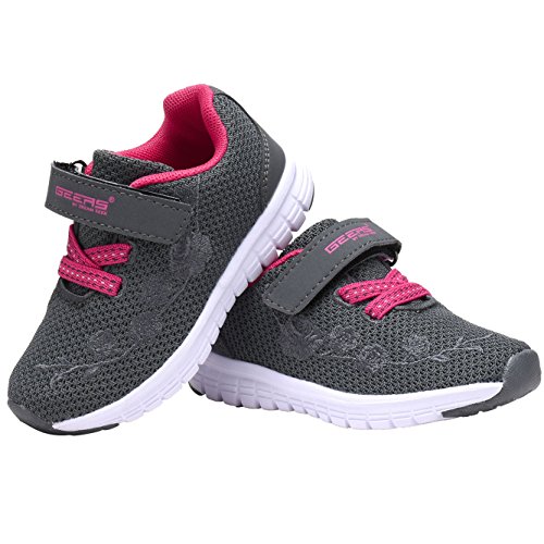 ONSUN OS002 Toddler Running Sneakers little Girl's Colorful Mesh Shoes GREY/FUCHSIA-9