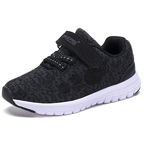 ONSUN OS002 Kids Running Sneakers little Girl's Fashion Sport Shoes BLACK VELCRO-1