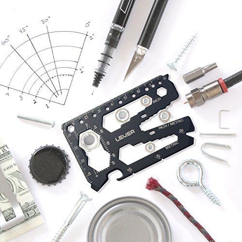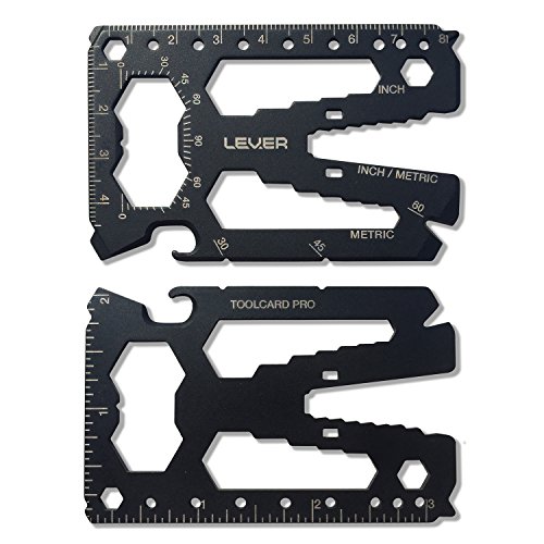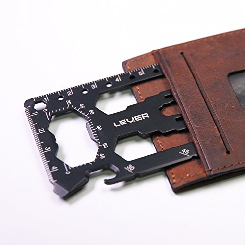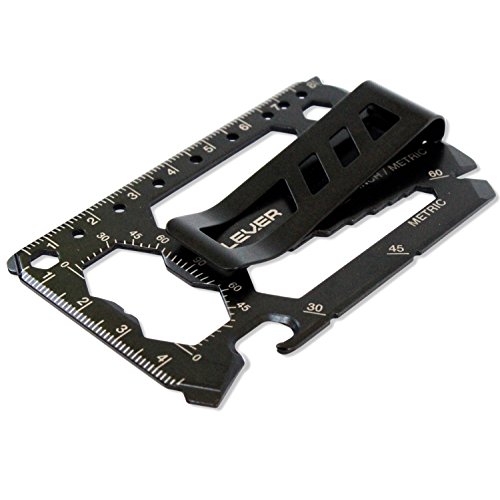 Lever Gear Toolcard Pro with Removable Money Clip - 40 Tools in 1 Credit Card Multitool - Tactical Black. Slim Minimalist Stainless Steel Wallet Card or Moneyclip - Great gift idea.