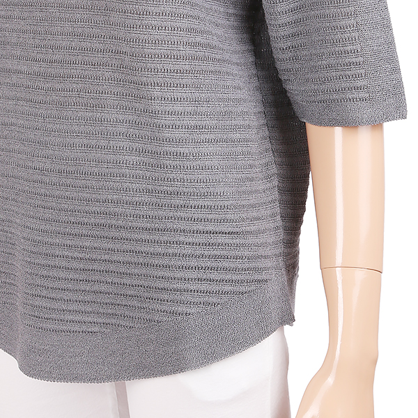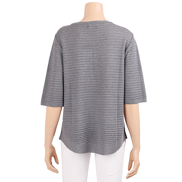 약간 가실 가실한 시원한 느낌의깔끔한 여름 니트 입니다,기본 스타일이기는 하지만 단정하고 깔끔한 스타일이기에 하나만 입으셔도 단정한 외출복이 됩니다.7부 소매기장의 박시한 니트 티셔츠라 통바지와 배기팬츠에 착용해도 좋습니다