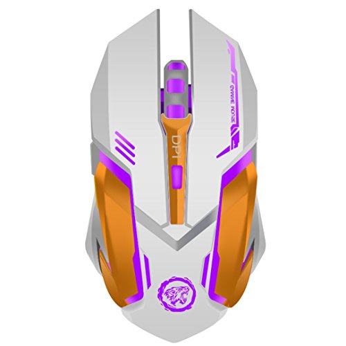 -. Feature : RECHARGEABLE: Built-in rechargeable battery.No need to change batteries. Up to 18 months of Li-ion battery life virtually eliminates the need to change batteries (Battery life may vary based on user and computing conditions.) / SILENT CLICK: Special soundless design for the right and left buttons, you can use it in your office to build a quiet office atmosphere. / 6 BUTTONS: scroll wheel, page forward, page backward, left button, right button, DPI key. When you browse web pages, you can click the side (forward/backward) buttons to go to the next or previous page. / LED LIGHT-UP FEATURE: 7 soothing LED colors change alternately, cannot be set to one specific color, it can be turned off. / ADJUSTABLE DPI: 800/1600/2400 DPI free switch. Dots per inch (DPI) is a measurement of how sensitive a mouse is. The higher DPI, the farther the cursor on your screen will move when you move the mouse.