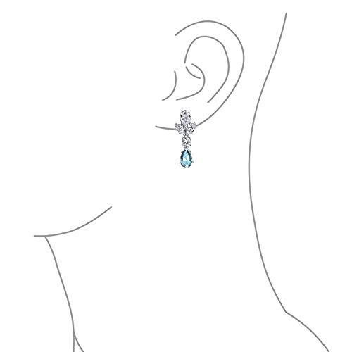 These magnificent CZ Aquamarine Color Teardrop Leaf Vine Drop Clip On Earrings will dazzle any outfit you wear. Made from rhodium plated brass and cubic zirconia stones, these clip on earrings have an intricate leaf and teardrop design. These clip on earrings for women are wonderful pieces of bridal jewelry and make great anniversary gifts.