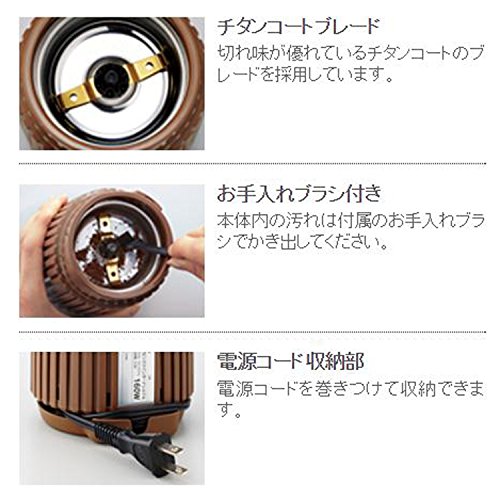 ドリップマイスターシリーズのコーヒーミルは、チタンコートのブレードで運転時間の長さに応じてお好みの大きさにコーヒー豆を挽くことができる