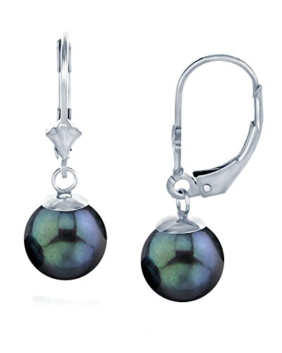Simplicity and elegance have never made such a perfect combination. A beautiful pair of dyed black Akoya pearls on elegant .925 sterling silver leverback backings. Pearls in this beautiful dyed black Akoya color are gorgeous and will make a perfect addition to your pearl jewelry collection. The pearl earrings have a "Superior" grade luster, our highest grade available, and are AA+ in quality. All pearl jewelry comes packaged in an elegant jewelry gift box to make for a beautiful presentation.