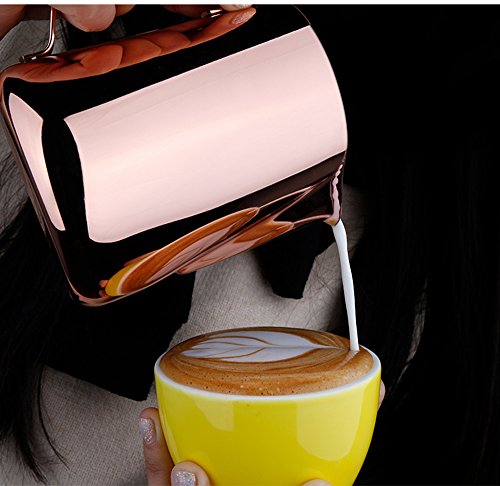 -. Feature : Perfect for frothing milk for lattes,chocolate and coffee,Perfect for water,juices,batter mixes,smoothies,and other pour-able item whether hot or cold,Ideal to use with coffee machines with attached milk frother / Material:Stainless Steel,Frothing Pitcher is made of 18/8 (304 Grade) stainless steel which means that it's food safe,won't rust or stain. / Inclined mug mouth for convinient pouring.Dishwasher-safe,Right-handed design. / Convenient:The simple design and dripless spout means no mess and perfect latte art. / Lifetime guarantee:We have a commitment to every buyer 100% satisfaction.100% Lifetime Satisfaction Guarantee for risk-free shopping.