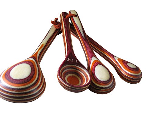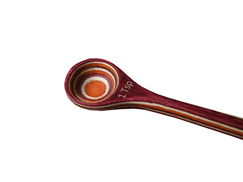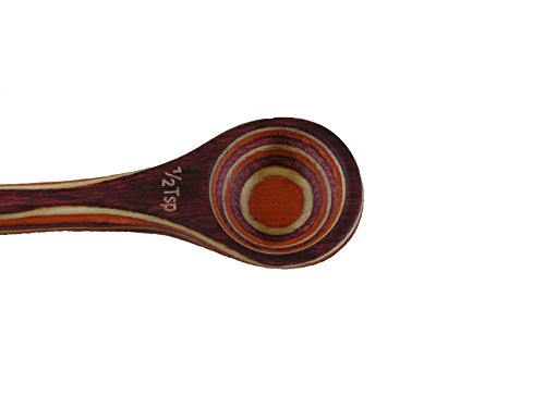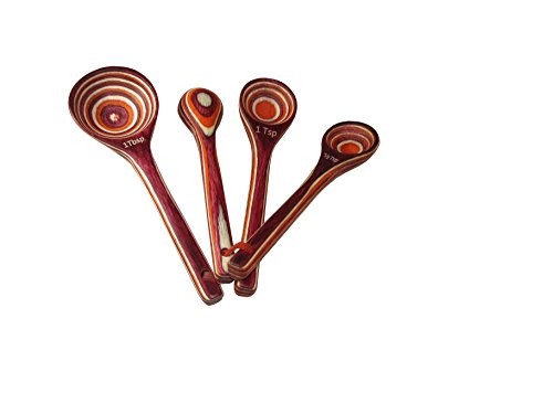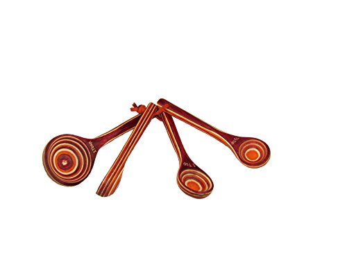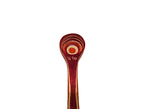 Exotic Pakka Wood Measuring Spoon Set for Dry and Liquid Ingredients - Pack of 4, Sizes Include 1 Tbsp, 1 Tsp, 1/2 Tsp, 1/4 Tsp - With Removable Loop and Wide No-Spill Bowl - By Crate Collective (Red)